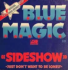 "Sideshow" is a song recorded by American R&B soul vocal quintet Blue Magic, released in 1974. It was first released on the album Blue Magic and when issued as a single it sold over a million copies, going to No. 1 R&B in April 1974 and No. 8 pop in the United States in that summer. Billboard ranked it as the No. 19 song for 1974. In the Canadian Year-end chart, it was No. 77.[1]