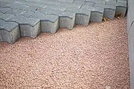 Pre-cast concrete pavers are used for sidewalks, often colored or textured to resemble stone. Sometimes cobblestones are used, though they are generally considered too uneven for comfortable walking.