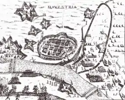 The Siege of Deventer was a siege of the city of Deventer by States troops under George van Lalaing, count of Rennenberg, from 3 August to 19 November 1578 during the Eighty Years' War. It was besieged in an attempt by the States-General of the Netherlands to better protect the regions of Holland and Utrecht from Spanish plundering. Since 1572 the city had been held by the German Polweiler-regiment for the Spanish Empire on behalf of Don John of Austria. After Lalaing had put into practice a number of pieces of strategic advice from Johan van den Kornput, the city was prepared to negotiate a surrender and on 19 November 1578 handed itself over to States troops.