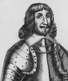 Sir John Hotham fought in the Palatinate campaign of the Thirty Years' War in the early part of the seventeenth century, before later being returned as a member of Parliament for Beverley in the East Riding. He was a favourite of Thomas Wentworth, who appointed him as governor of Hull in 1628. Hotham opposed both the King and Wentworth during the Bishops' Wars, and was replaced as governor in 1639. The following year he withheld reinforcements from Wentworth, for which he was stripped of more of his positions.[14] Hotham was renowned for being easily offended, and was described by Sir Hugh Cholmeley as often letting his emotions overcome his better judgement.[15] He felt slighted by the loss of his commissions, and turned into a political opponent of the King in Parliament,[16] where he became one of the most vocal members.[17]
