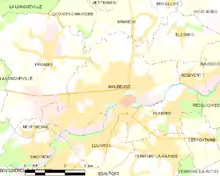 After the Franco-Prussian War of 1870–1871 the French built more fortresses on the German border and extended the frontier fortifications northwards with new building at Hirson, Maubeuge, Lille and Dunkirk.[1] Raymond Adolphe Séré de Rivières oversaw the creation of a ring fortress, le camp retranché de Maubeuge (the Entrenched Camp of Maubeuge) with the construction of six forts and seven intermediate fortifications (ouvrages, fortified shelters).[2] The town walls, 500–600 m (550–660 yd) in diameter, had been built by Marshal Sébastien de Vauban in the seventeenth century. Forts de Boussois, des Sarts, de Leveau, d'Hautmont, du Bourdiau and Fort de Cerfontaine were built about 3–6 km (1.9–3.7 mi) beyond the city walls, on a circumference of about 32 km (20 mi). The forts were pre-1885 masonry types except for du Bourdiau, which had a concrete shell, capable of resisting some modern heavy artillery.[3]