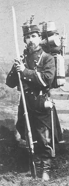 The Government of National Defense, led by Léon Gambetta, calls for the creation of free corps (or companies) of snipers intended to harass the enemy: "That each Frenchman receive or take a rifle, and that he is put at the disposal of the authority: the fatherland is in danger!". These volunteers appear in the Ardennes from August 1870 and multiplied after the disaster of the Imperial German Army, renewing a practice well known in border regions since the invasions of 1814 and 1815. Among these improvised units are the Scouts of the Ardennes, Chasseurs de l'Argonne, Montagnards de Revin, Corps franc de Vosges, and other units.[36]