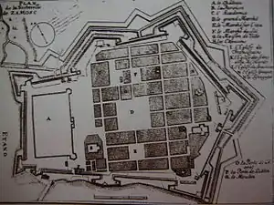 On February 25, 1656, Swedish troops appeared at the gates of the stronghold. According to a legend, when Swedish representatives came to the town and proposed the capitulation of the fortress, Jan 'Sobiepan' Zamoyski answered: "I am the Lord for myself and I will not give Zamość to the Swedes".[1]