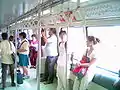 Some trainsets were reconfigured to have more standing space in the late 1990s as part of an experimental programme. In particular, the second and fifth cars (the blue cars) were reconfigured to have more standing room on both sides of a seat row, as 3 seats from some later cars.