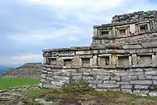 The Sierra Norte was important for its trade routes in the pre Hispanic period as it connected the Mexican Plateau with the Gulf coast.[5] This location also attracted migrations of people, most notably the Nahuas and the Otomi. The first Nahuatl speaking people in the area were the Toltecs in the 7th century, gaining control of much of the Sierra Norte area by 919.[4] Another Nahuatl group were the Olmeca-Xicalancas who came into the area from the south. There are two main dialects of Nahuatl spoken in the Sierra Norte but it is not known if they are the result of the two migrations. By the 11th century, most of the Nahuatl names that now dominate the area became established.[1] The Otomis were pushed north and east of their probably original home in the Toluca Valley by Nahuas with the Sierra Otomi found in the far north of the region.[10] By the 15th century, the Totonacs were weak and the Aztecs took over the area, pushing much of the population east and out of the Sierra Norte.[1][4] It became a tribute province of Texcoco.[5]
