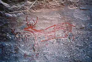 The Sierra de Guadalupe cave paintings are a series of prehistoric rock art pictographs near Rancho La Trinidad, Mulegé in Baja California Sur, Mexico. The Sierra de Guadalupe, mountains west of Mulegé, contains the largest number of known prehistoric rock art sites in Baja California.[1]