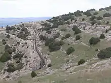 This mountain range is a quiet lonely and isolated area with a sizeable amount of wildlife, foremost of which are the wildcat, boar, little bustard, Eurasian stone-curlew, peregrine falcon, European nightjar, black wheatear, common wood pigeon, Dartford warbler, red-legged partridge and Bonelli's eagle.[1]