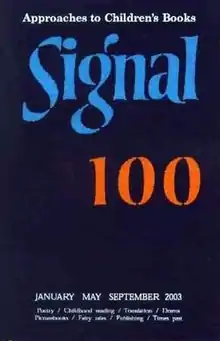 Signal: Approaches to Children's Books was an independent journal about literature for children. It was founded by Nancy and Aidan Chambers in 1970 and ran until 2003. In 1980 it was the subject of an anthology by Nancy Chambers titled The Signal Approach to Children's Books, A Collection.[1] It was described by Peter Hunt in The Oxford Encyclopedia of Children's Literature as "one of the outstanding journals in its field, with a reputation for integrity, accessibility, and innovation."[2] It produced an annual review volume titled The Signal Review of Children's Books.[2]