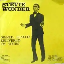 "Signed, Sealed, Delivered (I'm Yours)" is a soul song, by American musician Stevie Wonder, released in June 1970 as a single on Motown's Tamla label. It spent six weeks at number one on the U.S. R&B chart and peaked at number three on the U.S. Pop chart.[2] In the same year, the song was also released on the album Signed, Sealed & Delivered.