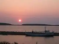 Sigri is a small fishing village near the western tip of Lesbos Island. Its name derives through Greek σίγουρος from the Venetian word siguro, meaning "safe", based on the fact that it has a safe harbour. Sigri has a Turkish castle, built in 1746 during the Ottoman occupation, which looks over the bay and the long island of Nissiopi, which stretches across the mouth of the bay and acts as a buffer to the prevailing winds. The port of Sigri is able to accommodate large vessels, even cruise ship-size ferry boats coming from the mainline. Almost all shipping to Lesbos, however, comes into the east of the island.