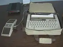 The Silent 700, introduced in 1971,[1] was a line of portable computer terminals manufactured by Texas Instruments in the 1970s and 1980s. Silent 700s printed with a 5 x 7[2] dot-matrix heating element onto a roll of heat-sensitive paper. Some models were equipped with an integrated acoustic coupler and modem that could receive data at 30 characters per second. Other models could be directly connected to computers at 300 bits/second (bps), and were sometimes used as the System console where a hard copy record of the activities would be retained for a period of time.