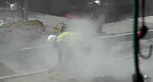 On of the main updates to OSHA's silica standard was the reduction of the permissible exposure limit (PEL) for respirable crystalline silica from 250 to 50 micrograms per cubic meter of air, averaged over an 8-hour shift.[50] The updated standard also shifts the focus of controlling silica exposure from the use of PPE (respirators) to the use of engineering controls (such as using water-integrated tools or vacuum systems) and administrative controls (limiting exposure time per shift). Employers are still required to provide respirators when engineering and administrative controls cannot adequately limit exposure. Additional provisions include limiting worker access to high exposure areas, signage requirements in high exposure areas, the development of a written exposure control plan, medical exams to highly exposed workers (optional for exposed employees), and training for workers on silica risks and how to limit exposures. Some recent studies have found workers who grind granite counters and use water controls to eliminate dust are becoming ill from exposure to dust after water has evaporated the next day.[51] The standard also provides requirements for cleaning up the slurry left behind when water-integrated tools are used as an engineering control.