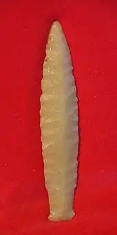 The earliest known humans at Silver Mound were Paleo-Indians, who entered the area about 9550 BC.[4] This is not long after the last glacier began retreating a short distance to the north, when the climate remained cool and mammoths and mastodons still roamed the area. To hunt them, the Paleo-Indians needed good projectile points. They also needed knives and scrapers for processing their kill. These tools could be made from the quartzite from Silver Mound, which was the largest source of orthoquartzite in the Midwest. Tools made from Hixton orthoquartzite and datable to this period have been found as far away as Mammoth Cave in Kentucky.[3]