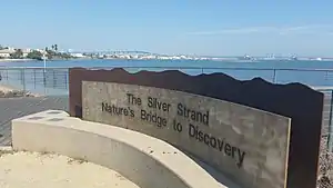 Silver Strand, or simply The Strand, is a low, narrow, sandy isthmus or tombolo 7 miles (11 km) long in San Diego County, California partially within the Silver Strand State Beach.[1] It connects Coronado Island with Imperial Beach. Together with the Point Loma peninsula it shelters and defines San Diego Bay. State Route 75 (SR 75) runs the length of the strand and is a popular site for jogging and bicycling. The Silver Strand Half Marathon is run along the route each November.[2]
