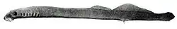 The silver lamprey is an eel-like fish with an attenuate body composed of 49–52 clearly defined segments (i.e. myomeres, between the last gill slit and the anus). Silver lampreys possess a cartilaginous skeleton, and adults generally grow to a length of 12 inches and are silvery or bluish in color when spawning. Prior to spawning adults are often a dull brown or tan color. The dorsal fin is continuous, though it may be notched. The mouth is a jawless, sucking disc, with unicuspid teeth arranged in circular rows and is in the inferior position. When expanded, the mouth is wider than the lamprey's body. The lamprey's gills are arranged in a straight line immediately behind the eye, and a single nostril is located between the eyes. Larvae are a brown to tan all over have no eyes (instead they have eyespots) and are called ammocoetes. They also have seven gill openings and do not have any paired fins, they have only a long continuous fin runs from the dorsal to the ventral side. Ammocoetes also have no teeth and instead have an oral hood which houses skin extensions that help them filter particles out of the water as they draw it into their oral cavity.