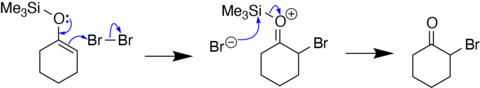 {{cite journal}}: CS1 maint: uses authors parameter (link) - Clayden, J., Greeves, N., & Warren, S. (2012). Reactions of silyl enol ethers with halogen and sulfur electrophiles. In Organic chemistry (Second ed., pp. 469-470). Oxford University Press.