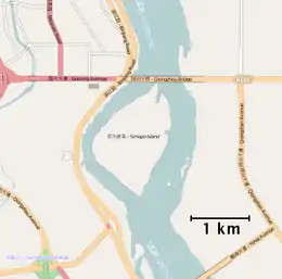The 1.134 km2.[1] island is located approximately 50 metres south of the Qiongzhou Bridge, and 5 km north of the Nandu River Iron Bridge. It will be developed with an emphasis on sports facilities,[2][3] and will include a sports park and golf course.[4] Garden-style hotels and several bars will also be constructed.[5][6]