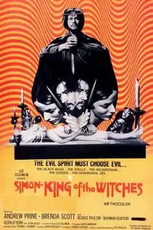 Simon, King of the Witches is a 1971 American exploitation horror film directed by Bruce Kessler and starring Andrew Prine, Brenda Scott, George Paulsin, Norman Burton and others. The film centers on the title character as he attempts to become a god through magic rituals.