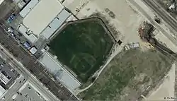 As a football stadium, the field ran southeast to northwest, with one large concrete grandstand, along the southwest sideline, which was the third base line for baseball. The diamond was aligned due north (home plate to second base), and the field was lit for night games.