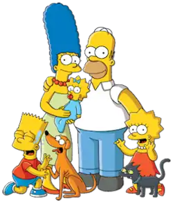 The Simpsons are a family who live at 742 Evergreen Terrace in the town of Springfield in the United States. The state in which in this town is located is never specified, however they do have snow and sometimes wear sweaters in the fall.[16] It's a running joke in the show to be as vague and ambiguous as possible whenever hinting at which U.S. state the town of Springfield might be located in. Homer, the father, works as a safety inspector at the Springfield Nuclear Power Plant, a position at odds with his careless, buffoonish personality. He is married to Marge Simpson, a stereotypical American housewife and mother. They have three children: Bart, a ten-year-old troublemaker; Lisa, an eight-year-old child prodigy; and Maggie, a toddler who rarely speaks, but communicates by sucking on a pacifier. The family owns a dog, Santa's Little Helper, and a cat, Snowball II. Both pets have had starring roles in several seasons. Despite the passing of yearly milestones such as holidays or birthdays, the Simpsons do not physically age and still appear as they did at the end of the 1980s. Although the family is dysfunctional, many episodes examine their relationships and bonds with each other and they are often shown to care about one another.[17]