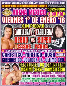 | 6 | Negro Casas (with Puma) defeated Super Parka (with Volador Jr.) | Best two-out-of-three falls Lucha de Apuestas, hair vs. hair match[12] | 12:49 |