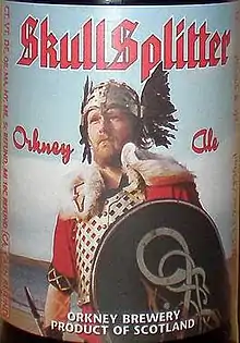 Skull Splitter is an 8.5% abv wee heavy[6] Skull Splitter won the award of Supreme Champion Winter Beer of Britain 2001 at CAMRA's national winter celebration of beer. Skull Splitter takes its name after Torfinn Hausakljuv who was nicknamed "Skullsplitter". Hausakluif was the 7th Viking Earl of Orkney sometime around 950 AD.[7]