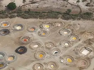 Much of the region consists of mangrove swamps.[3] The upper reaches of the rivers adjoin the Sahel region and are affected by its desertification. The salinity of the water increased during the 1970s instance of the Sahel drought and mismanagement of the rivers upstream has been described as a factor.[3] Mangroves are disappearing, and freshwater fish are disappearing with them. The villagers have difficulty obtaining freshwater. Sometimes water pumps are donated by international organizations, but spare parts are difficult to find when the pumps fail. The change in water salinity is affecting the ecosystem as much as it is changing the lifestyle of the inhabitants of the region.