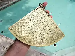 The sine quadrant (Arabic: Rub‘ul mujayyab, الربع المجيب) was a type of quadrant used by medieval Arabic astronomers. It is also known as a "sinecal quadrant" in the English-speaking world. The instrument could be used to measure celestial angles, to tell time, to find directions, or to determine the apparent positions of any celestial object for any time. The name is derived from the Arabic rub meaning 'a quarter' and mujayyab meaning 'marked with sine'.[1] It was described, according to King, by Muhammad ibn Mūsā al-Khwārizmī in 9th century Baghdad.[2]