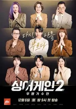 Sing Again (Korean: 싱어게인 - 무명가수전) is a South Korean television program that airs on JTBC starting November 16, 2020. Season 1 aired at 22:30 (KST) on Monday. It was scheduled for a season 2 after garnering positive response from viewers.