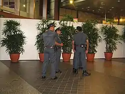 As Singapore had been a prime terrorism target and because of violent protests at previous meets in other cities, the government used this to justify maintaining overwhelming amounts of security in and around the vicinity of the main events. The Singapore Police Force was entrusted with planning and implementing security arrangements and the enforcement of law and order, with the support of Aetos and CISCO auxiliary police forces. These arrangements include the main venue's operations, border security, as well as island-wide operations.[10]