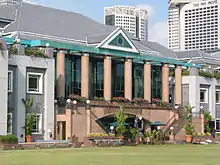 The club stands at the north end of the Padang as part of the historical Civic District, which is also part of the Singapore Grand Prix route.