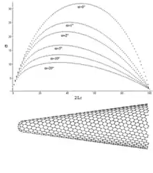 Theoretical studies show that the variation of stress along the CNHs is a function of their geometrical properties such as cone angle. For example, location of maximum axial normal stress becomes closer to the tip of CNH as the cone angle increases (Figure on the right). Furthermore, it has been shown that the variation of shear stress in the CNH/matrix surface is non-symmetric which is in contrast to symmetric distribution of shear stress in the CNT/matrix interface.