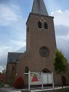 - The gothic Heilige Man Job ("Holy man Job") church dates back from 1511 and is more than 500 years old. The two aisles were built in the 19th century. In May 1940, the church was heavily damaged by troops of the retreating Belgian army, who blew up the tower to prevent the Germans from using it as a lookout post. After the war, the tower was rebuilt in contemporary style.[5][6]