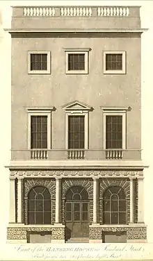 The Oxford Journal states that Asgill's Portman Square home: "sold...for 13,000l" in 1812 [£948,388 in 2021],[9] and it had been "built by Sir Robert Taylor for Sir Charles Asgill, and, except the Richmond Villa for the same Sir Charles, was one of the prettiest he ever built."[10] Asgill also occupied 15 St James's Square from 1768–73, which had been altered by Taylor for Peter du Cane.[11] A 1930s building, which replaced this original home, was converted into office space and residential duplex apartments. The three duplexes created were named after the historic owners of this property: Timbrell, Asgill and Alban.[12]