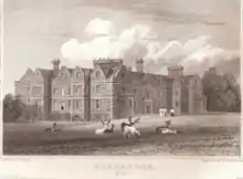 Dering married Mary Harvey, daughter of Daniel Harvey (a brother of Dr William Harvey) by Elizabeth, daughter of Henry Kynnersley on 5 April 1648.[3] They had 17 children, of whom 10 survived to adulthood. He was succeeded in his estates and title by his son Sir Edward Dering, 3rd Baronet. Among the other children, Elizabeth was married to Sir Robert Southwell, by whom she is ancestral to Camilla, Duchess of Cornwall;[4] Catherine to Sir John Perceval, 3rd Baronet, by whom she was mother of John Perceval, 1st Earl of Egmont; Daniel, an Army officer, to Sir John's sister Helena Perceval; and Mary to Sir Thomas Knatchbull, 3rd Baronet.[5]