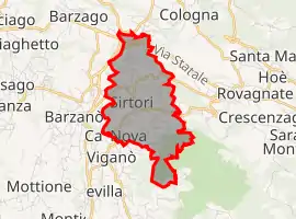 Sirtori (Brianzöö: Sìrtur) is a comune (municipality) in the Province of Lecco in the Italian region Lombardy, located about 35 kilometres (22 mi) northeast of Milan and about 13 kilometres (8 mi) southwest of Lecco. As of 31 December 2004, it had a population of 2,844 and an area of 4.3 square kilometres (1.7 sq mi).[3]