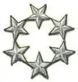 In 1976, as part of commemorations for the U.S. Bicentennial, General George Washington was posthumously promoted to the rank of General of the Armies of the United States.[9] Although the law did not actually specify the number of stars,[10] some U.S. newspapers[11][12][13] and members of Congress[14] described this as a "six-star rank". His appointment had been to serve as "General and Commander in Chief of the Army of the United Colonies".[15][16]