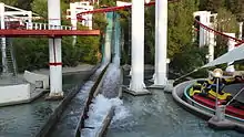 In 1993, Six Flags Magic Mountain entered the Time Warner era.[6] The new ride for the year was Yosemite Sam Sierra Falls. It was a water ride that has two twisting tubes that riders could slide down in using a raft. Also that year, there was re-theming and High Sierra Territory was opened. The Showcase Theatre became Golden Bear Theater, the Animal Star Theatre was created in Bugs Bunny World, and a large, fake, wooden tree was built. This year also saw the end of live non-Christian themed concerts in the park due to the riot that broke out as a result of a "TLC" concert that was oversold. Magic Mountain was quickly overwhelmed by large crowds that vandalized and destroyed property. Park shops had their windows broken and looting quickly followed. Police were called to the scene in full riot gear. The park was evacuated and closed down for the night.[7]