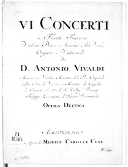 Antonio Vivaldi wrote a set of flute concertos, Op. 10,[lower-alpha 1] that were published c. 1728 by Amsterdam publisher Michel-Charles Le Cène.