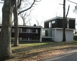 An indication of the cooperative nature of TAC's endeavor was that after house sites had been drawn up, they were all priced the same. The first twelve sites were assigned to participating families by drawing numbers from a hat.[12] The egalitarianism of the neighborhood also reflected the philosophy of Walter Gropius and TAC. All members of TAC, including Gropius, had equal shares in the company, and he insisted that he not be looked at as the president.[13] Of the original TAC founders, only Gropius did not have a house on Moon Hill, having already built his house (Gropius House) in Lincoln, Massachusetts.