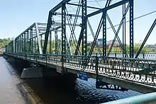 The Sixth Street Bridge is a four-span, wrought iron bridge that crosses the Grand River in Grand Rapids, Michigan. It is a Michigan State Historic Site and is listed on the National Register of Historic Places. Built in 1886, it is the longest and oldest metal truss bridge in Michigan.