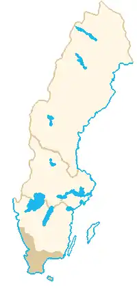 ![]() Sweden and part of Denmark, with the historic region Skåneland (the Scanian provinces) in brown, consisting of the Swedish provinces Blekinge, Halland and Scania, and the Danish island Bornholm | |