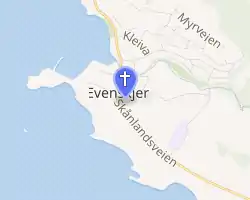 The first church built in Evenskjer was constructed in 1867 when it was still a part of the old Trondenes Municipality. The municipality bought the old Saltdal Church, took it apart, moved it to Evenskjer, and rebuilt it here to serve the people of the Skånland portion of the municipality. The new building was consecrate in September 1867. The area grew in population quite rapidly and by 1896, the church was too small for the parish. It was decided to build a new church slightly south of the old church. After the new church was completed in 1901, there was talk about moving the old church to Tovik to use as a new Tovik Church, however it was decided against this because of the poor condition of the old building. Instead, the old church was torn down and its materials were sold.[3]