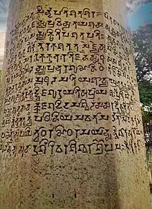 The Junagadh rock, which contains inscription of the earlier rulers Ashoka and Rudradaman, has an inscription engraved on the orders of Skandagupta's governor Parnadatta. The inscription states that Skandagupta appointed governors of all provinces, including Parnadatta as the governor of Surashtra.[17] It is not clear if the verse refers to routine appointments made by the king, or his actions after a political turmoil resulting from a war of succession or invasion.[18] The inscription outlines several qualifications required to be the governor of Surashtra, stating that only Parnadatta met these requirements. Again, it is not clear if these were actual qualifications required to be a governor under Skandagupta's rule, or if the verse simply aims to eulogise Parnadatta.[17]