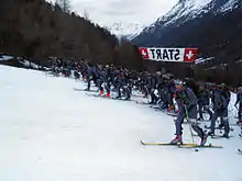 International competition is sanctioned by the International Ski Mountaineering Federation, while national bodies sanction national competitions, for example the United States Ski Mountaineering Association (USSMA),[5] Ski Mountaineering Competition Canada (SMCC),[6] and the Schweizer Alpen Club (Switzerland).[7]