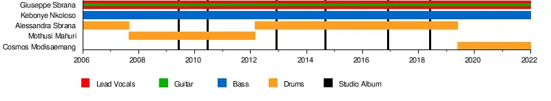 Upon their return, the band was interviewed by Mark Tutton,[3] where Giuseppe Sbrana discussed the expansion, and interest in the African metal scene. In 2019, Sbrana would leave the band for a second time. Her replacement was Cosmos Modisaemang.