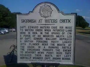 The Skirmish at Waters Creek was a minor action fought on March 8, 1781, during the American Revolutionary War. It was fought near Waters Creek in Newport News, Virginia between a group of local Patriot militia and British Army troops.[1]