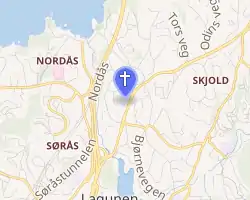 Skjold Church (Norwegian: Skjold kirke) is a parish church of the Church of Norway in Bergen Municipality in Vestland county, Norway. It is located in the Skjold neighborhood in the city of Bergen. It is the church for the Skjold parish which is part of the Fana prosti (deanery) in the Diocese of Bjørgvin. The white, brick church was built in a rectangular style in 1998 using designs by the architect Peder A. Ristesund. The church seats about 500 people.[1][2]
