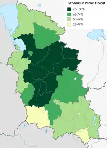 Percentage of Skobars in Pskov Oblast by district (2003)