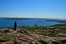 The most visited site in the park is probably the crevasse of Slåttdalsskrevan, but also popular are the view from over the archipelago from the nearby summit of Slåttdalsberget, as well as the Bronze Age funerary cairns.[18]